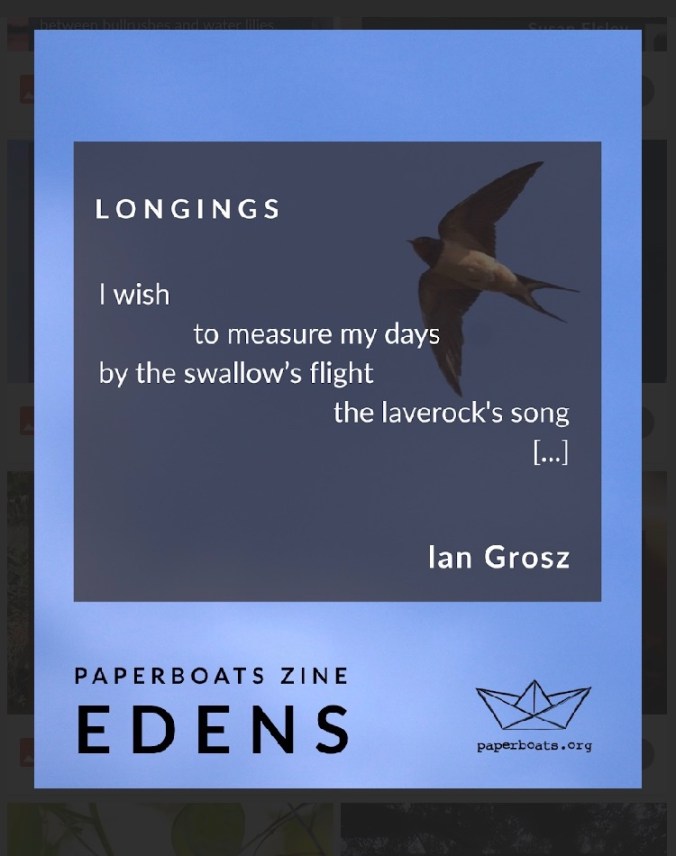 I’m proud to be co-editing the next issue of the Paperboats Writers e-zine with author Alex Nye, on the theme of Nature’s Voice.